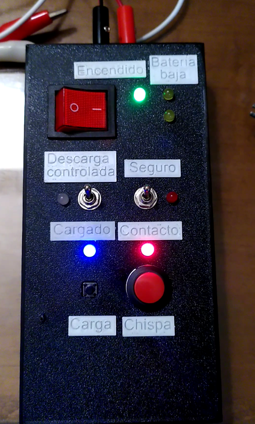 Today, the device has evolved into a reliable, portable igniter powered by a single 3.7V high-current LiPo battery. The output voltage is configurable but it has been limited to 400V to prevent damaging components—and ourselves. It can be commanded remotely via Bluetooth (up to ~150 m) or LoRa (tested up to 8 km), using a custom-built communication protocol. A pair of LEDs indicate power status and whether the high-voltage line is properly connected. The battery can be charged with a micro USB connector header on the back of the case.