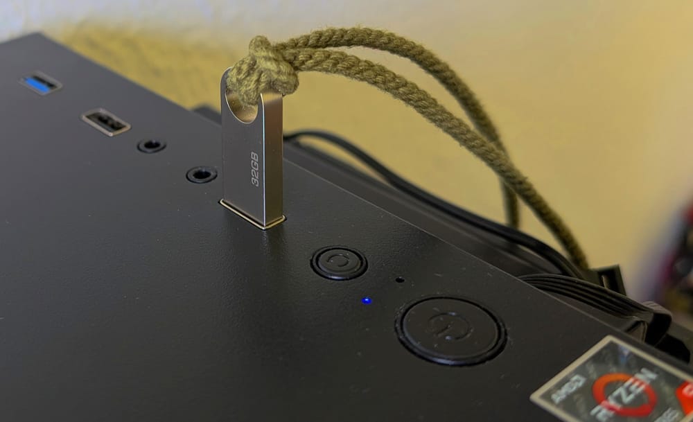 Therefore, the main disk in the computer will be fully encrypted, appearing as random, patternless data with no visible partitions—providing plausible deniability. The key-USB, however, will remain unencrypted. While encrypting the USB is possible, it is not covered in this setup.